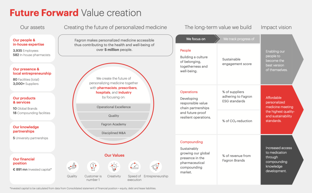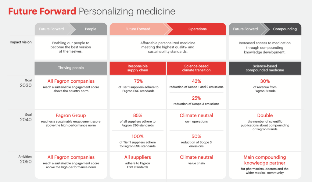 In 2024, Fagron, a leading global company in pharmaceutical compounding, refined its sustainability strategy by introducing: “Future Forward: Personalizing Medicine” to enhance its resilience and adaptability in a rapidly changing industry.